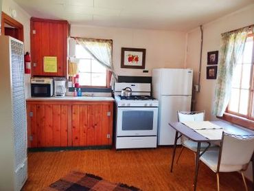 Our kitchens are stocked with dish soap, cooking pans, utensils, dishes, bowls, kitchen towels, dish cloths, paper towels, coffee maker, microwave, stove with oven, and a refrigerator. Beds are made up before you arrive so there is no need to bring your own bedding. Bathrooms have towels, wash cloths, hand towels, toilet paper, and shower mats. If you need something extra, please let us know. We have a variety of other kitchen appliances and can generally accommodate you.